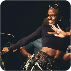 Dançarina, intérprete-criadora e arte-educadora, com formação em Licenciatura em Dança pela UFRJ. Sua trajetória atravessa linguagens como Jongo, Samba de Roda, Coco, Dança Afro e Dança de Salão, conectando ancestralidade, território e memória por meio do corpo.